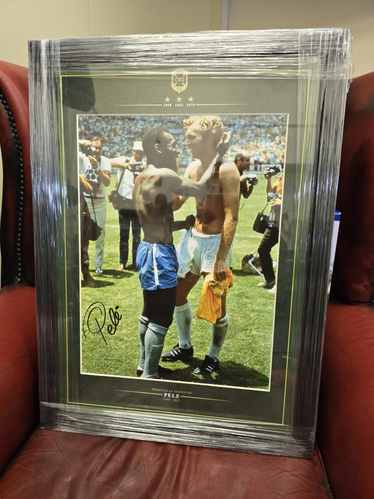 PELE HAND SIGNED PICTURE W/BOBBY MOORE